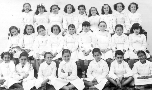 Martha Rosemblum con el gran mo�o blanco en la cabeza (segunda de la izquierda en la fila del medio)