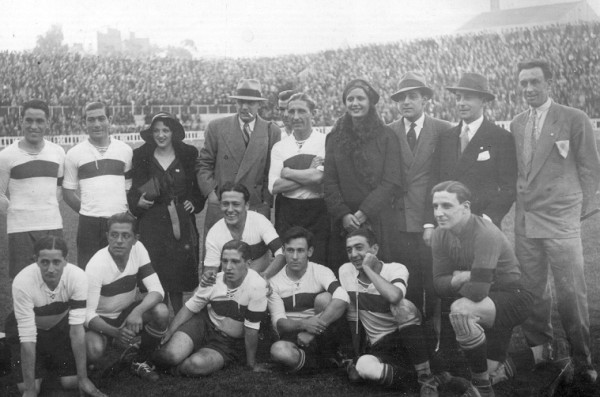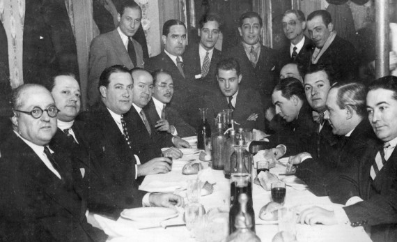 foto de pié, sobre la izquierda casi, papá se reunía con actores, autores (entre los